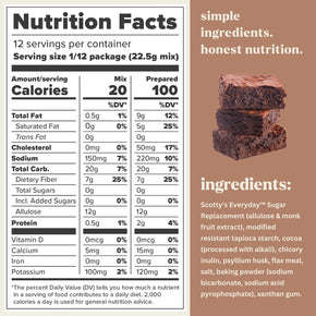 - Keto Friendly And 1g Net Carbs: Now you can finally enjoy gluten free brownie on your keto diet or low carb lifestyle. Scotty’s Everyday one net carb keto brownie mix is perfect for sharing with friends and family, whether they have dietary restrictions or are simply watching carbs.